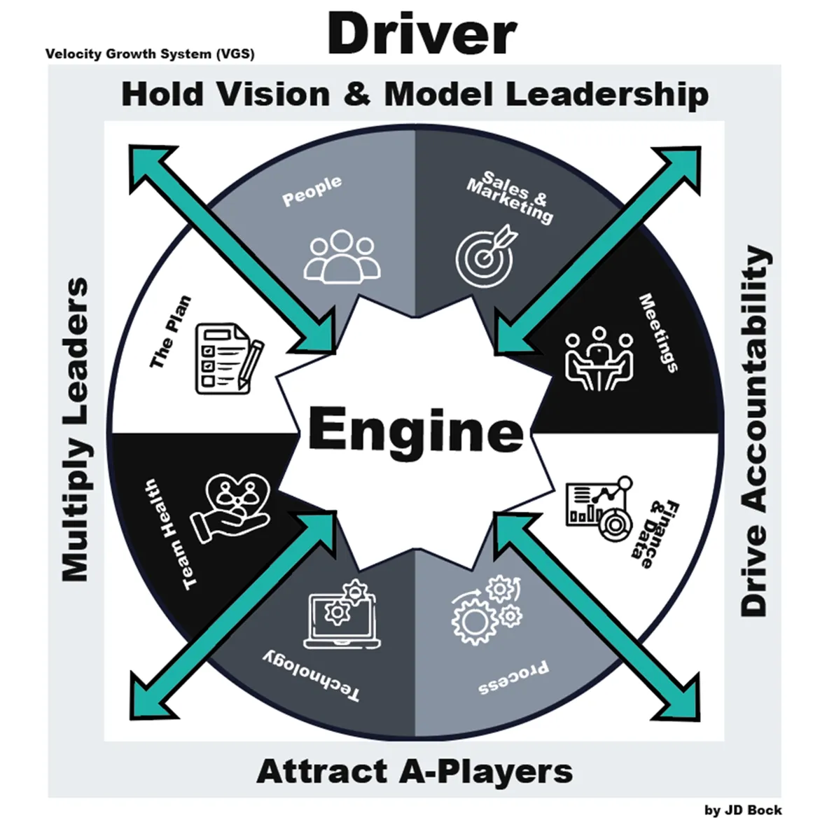 His frameworks unify vision, systems, and team accountability into a structure that produces measurable weekly progress.